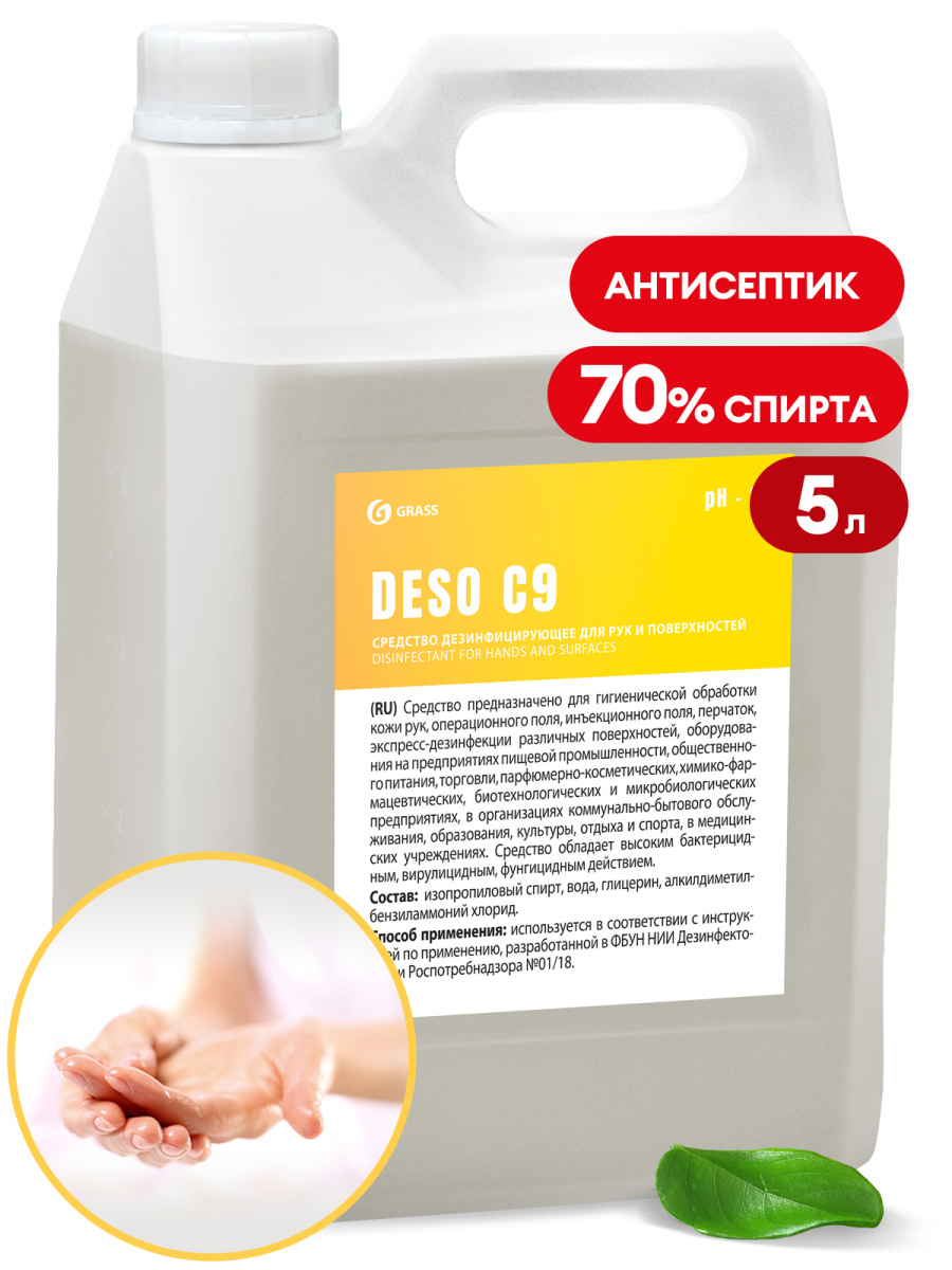 Дезинфицирующее средство "Deso" C9 на основе изоприл.спирта GRASS 5кг.