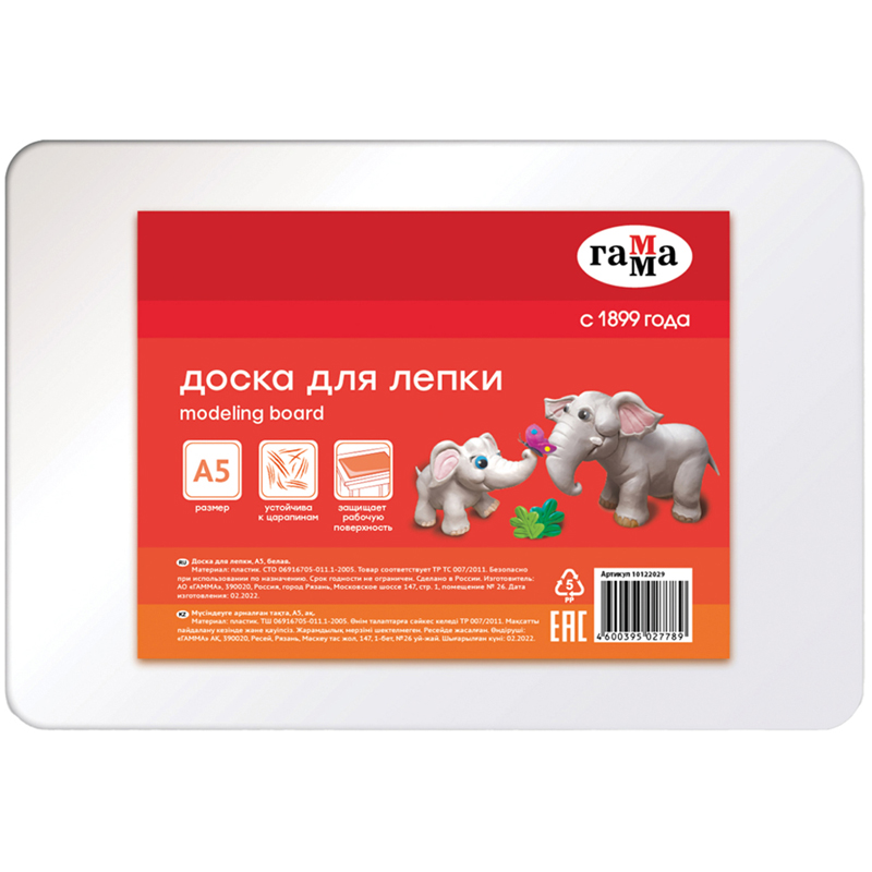Доска для моделирования из пластилина А-5 пластик белый Гамма арт.10122029
