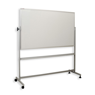 Доска магнитно-меловая размером 100×150 см. Вращается вокруг горизонтальной плоскости на 360 градусов, имеет 2 рабочие поверхности. Расстояние от пола до нижнего края доски 80 см. Простой и удобный узел фиксации позволяет установить полотно доски под произвольным углом. Лаковое покрытие. Алюминиевая рамка. По всей длине доски есть полочка для аксессуаров.