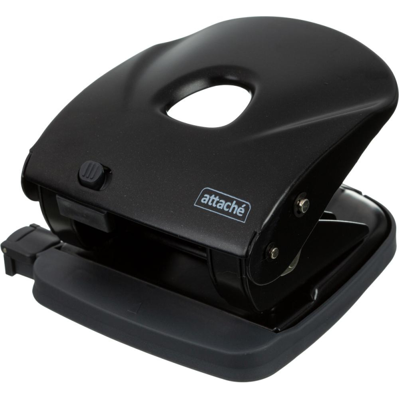 Дырокол Attache Power - это важный и необходимый предмет для комфортной работы в офисе и дома. Дырокол позволяет аккуратно перфорировать документы, чтобы подшить их в папку с двумя и четырьмя кольцами или в скоросшиватель. Корпус дыркола выполнен из высококачественного металла универсального черного цвета. Одним нажатием возможно пробить отверстия в документе толщиной до 30 листов плотностью 80 г/кв.м. Дырокол делает два отверстия диаметром 6 мм, расстояние между отверстиями - 80 мм. Пробойники дырокола изготовлены из высококачественного металла, что позволит им прослужить дыроколу долго и без сложностей пробивать листы бумаги. Удобный контейнер для конфетти легко открывается и закрывается, исключая его рассыпание. Наличие линейки с делениями позволяет зафиксировать бумагу на нужном расстоянии и пробить отвестия в бумаге в соответствии с ее размером. Удобно работать с форматами A3, А4, А5, А6, B4, B5, B6. Отметка на линейке 888 позволяет использовать также как дырокол на 4 отверстия. Дырокол имеет кнопку фиксации в закрытом виде, что позволяет экономить рабочего пространство. Имеет метку центрирования. Для эффективного пробивания максимально допустимого объема бумаги необходимо расположить дырокол на горизонтальной твердой поверхности, прикладывая усилия, плавно надавить на рычаг (при необходимости двумя руками), разномерно распределяя усилия по поверхности рычага.