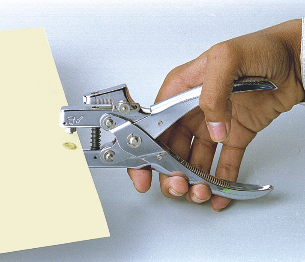 Дырокол-заклепочник на одно отверстие, наружный диаметр ножа – 4,5 мм. Пробивает: 20 листов. В комплекте – 1 упаковка клепок.