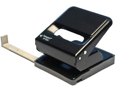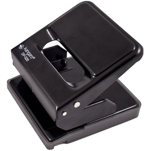 Дырокол настольный, расстояние между ножами – 80 мм, имеется пластиковый форматир, наружный диаметр ножа – 5,5мм. Пробивает: 25 листов. Цвет - черный.Изготовлен целиком из металла, со съемным пластиковым контейнером, предохраняющим поверхность стола от царапин.
