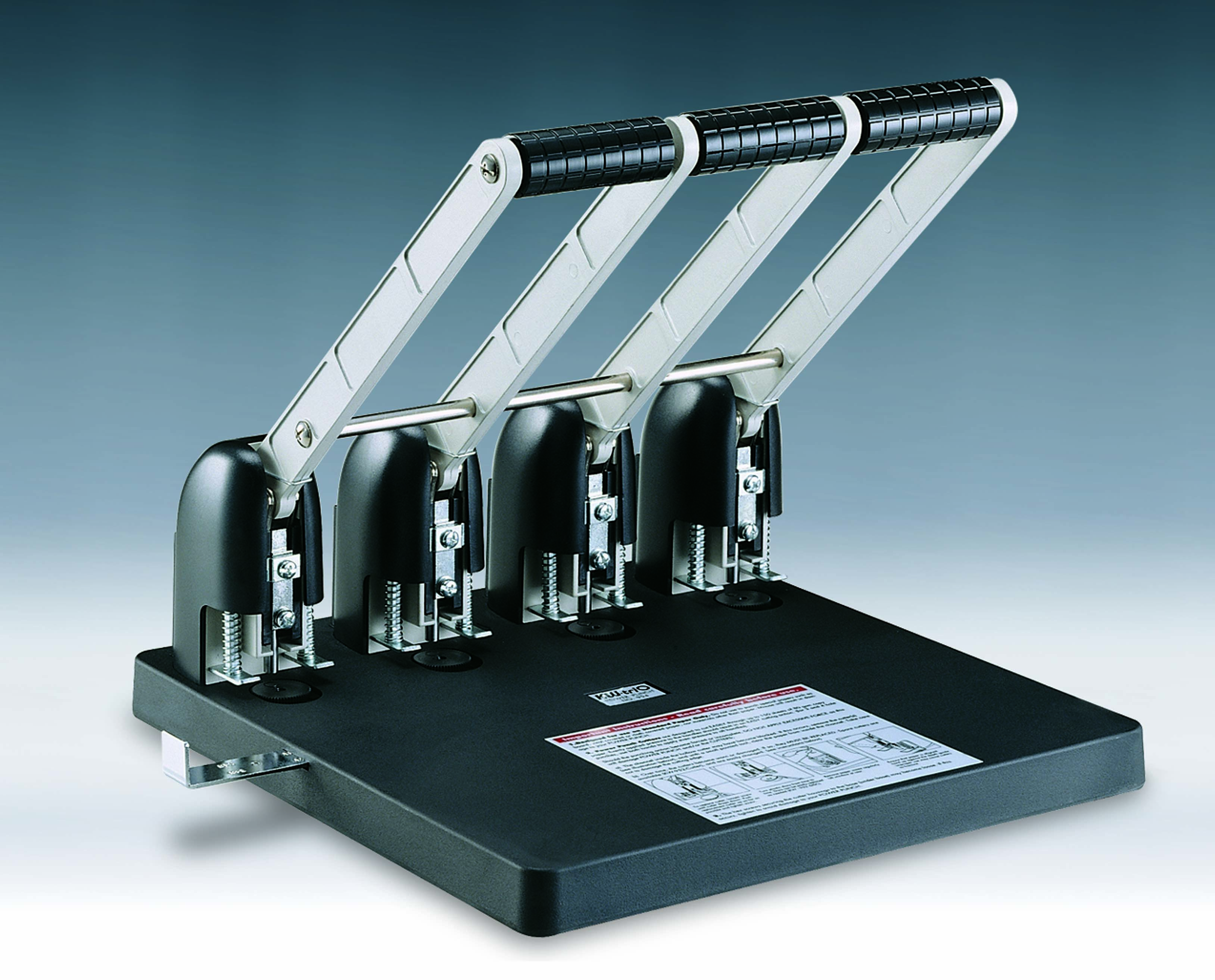 Тип: Дырокол Толщина прокола: до 150 листов Диаметр пробиваемого отверстия: 6 мм Особенности: выдвижная линейка, возможность замены ножей и дисков Цвет: черный