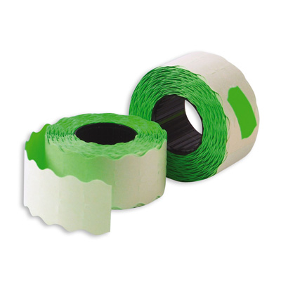 Этикет-лента зеленого цвета относится к ценовому сегменту «Эконом». Применяется в этикет-пистолетах для нанесения даты, времени, цены и других параметров в магазинах, супермаркетах. В рулоне 1000 этикеток формы «волна», размер каждой — 22×12 мм. Этикет-лента поставляется по 10 рулонов в упаковке.