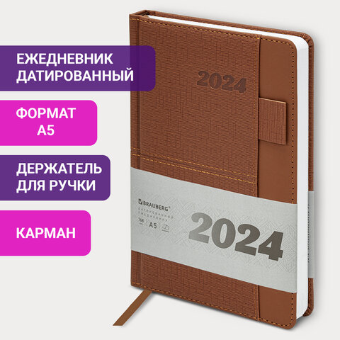 Ежедневник 2024 А-5 168л. "Brauberg" Pocket под кожу коричневый арт.114990