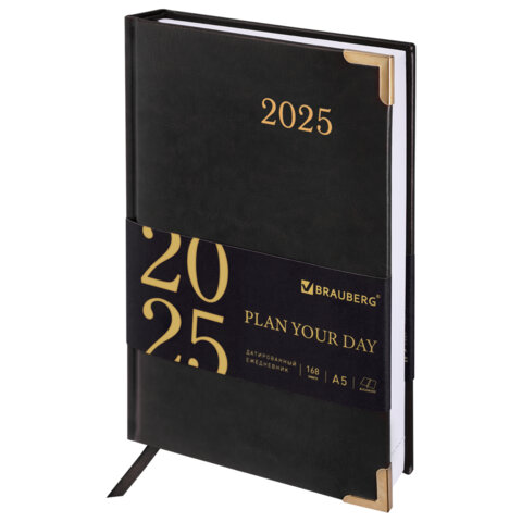 Ежедневник 2025 А-5 168л. "Brauberg" Senator под кожу черный арт.115817