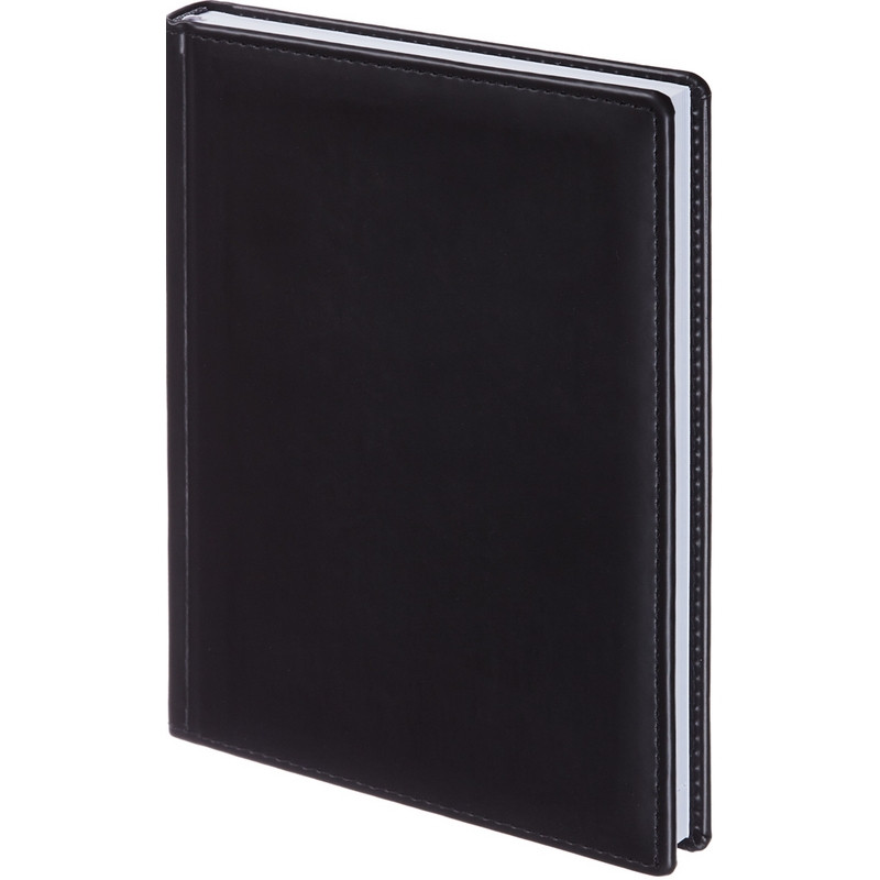 Ежедневник недатированный Attache, цвет черный. Коллекция ?Вива?. Формата А5, размер изделия - 148x218 мм. Однотонная обложка из высококачественного переплетного материала, гладкий матовый имитирующий натуральную кожу, с поролоном, по периметру отделочная строчка в цвет материала. Переплетный материал подходит для любого тиснения (блинт или фольга). Блок: недатированный, белый офсетный блок, плотностью 70 г/кв.м. , 176 листов (352 страницы), оснащен удобной закладкой-ляссе, перфорация уголков, 2 краски. Содержит информационный справочный блок: личные данные, праздники, междугородные телефонные коды России, Москвы, Санкт-Петербурга, Екатеринбурга, знаки зодиака, штриховой код, информации по странам, цифровые годы ГИБДД, форматы бумаги, температура, планы на год.