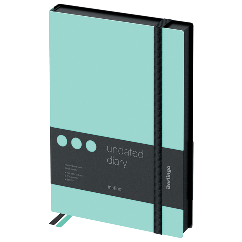 Ежедневники Berlingo Instinct изготовлены из матовой искусственной кожи c эффектом soft-touch. Сочетание двух контрастных цветов обложки: пастельного зеленого и черного. Полужесткая обложка с прострочкой по корешку. Черный срез блока. Вертикальная черная фиксирующая резинка увеличенной ширины 9мм. Запечатанные форзацы. Внутренний блок из 136 листов высококачественной кремовой бумаги повышенной плотности 80 г/м², пантонная печать в 2 краски, справочный материал и перфорированные уголки. Индивидуальная упаковка. Подходят под персонализацию: трафаретная печать, УФ-печать, тиснение фольгой, блинтовое тиснение, лазерная гравировка, шильд.
