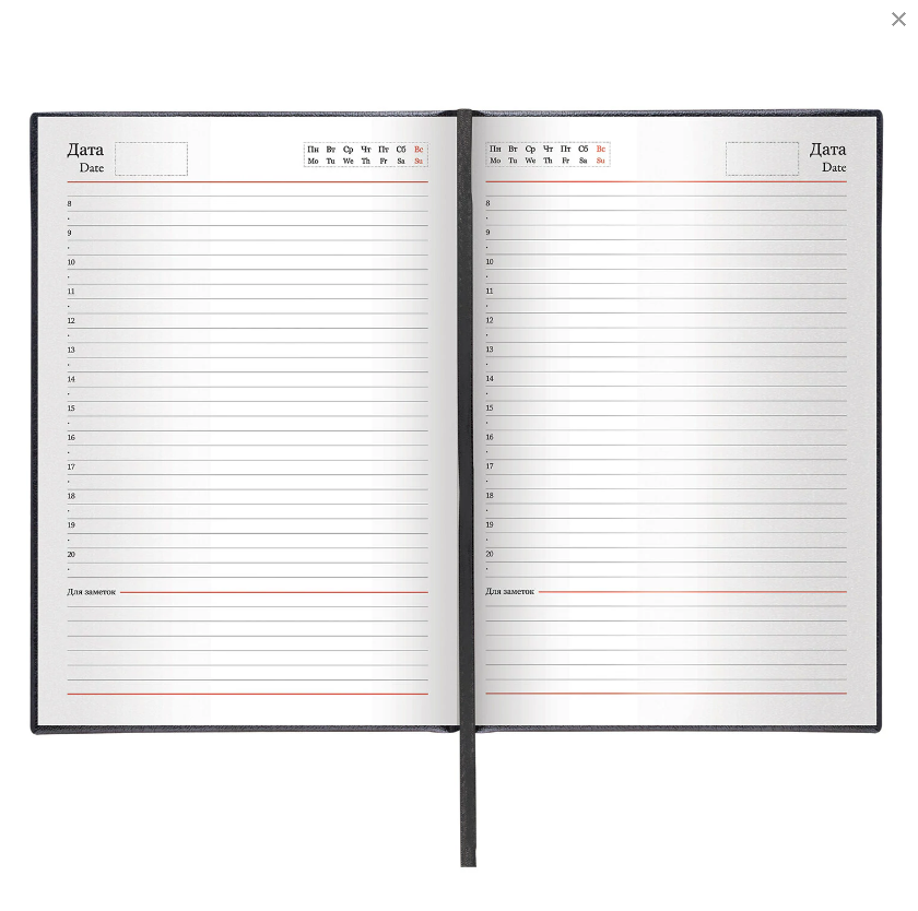 Ежедневник с обложкой черного цвета под зернистую кожу не оставит равнодушным требовательного обладателя с утонченным вкусом.