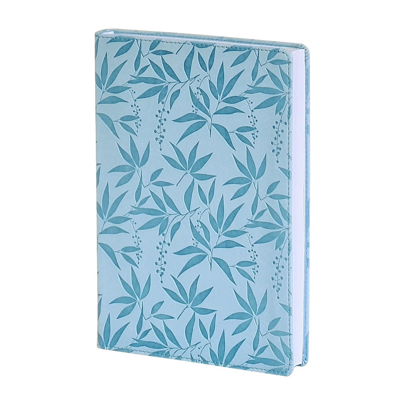 Ежедневник недатированный Infolio из коллекции Leaves А5 формата (140х200 мм) в голубом цвете и с тиснением свежих листочков, которые создают весеннее настроение. Мягкая обложка из матовой гладкой искусственной кожи с декоративным тиснением и прострочкой по периметру имеет скругленные уголки. Недатированный внутренний блок в линейку на 160 листов (320 страниц) - из высококачественной белой бумаги плотностью 70 г/кв.м с прямыми уголками. В ежедневнике имеется информационный блок, содержащий разделы: личные данные, карты мира и России, российские праздники, разница во времени между Москвой и городами России, международные единицы мер, планирование задач, важные даты. В ежедневнике также имеется одна удобная атласная закладка.