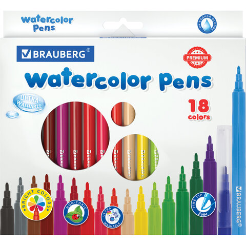 Фломастеры Brauberg 18 цв/уп. "Premium" ультрасмываемые карт/уп.арт.151939