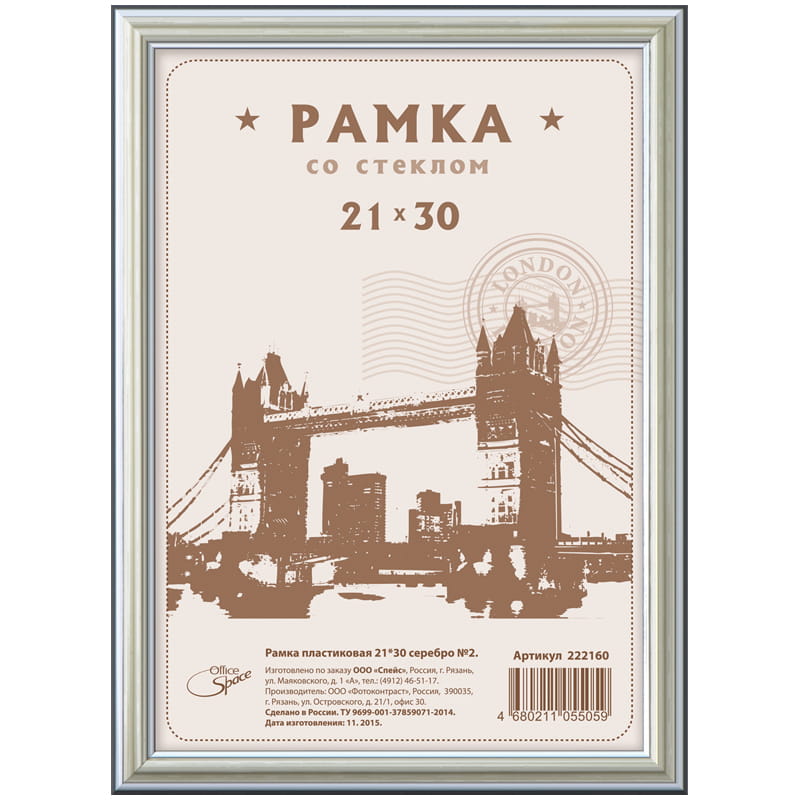 Страна Россия Штрихкод 4680211083670 Количество фото 1 Размер фото 21*30 см Материал багета ПВХ Материал экрана стекло Размер рамки 24*33 см