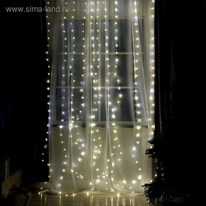 Гирлянда "Занавес" 2.8 х3м Роса на крючках с пультом IP20 серебр/нить 300 LED свеч/тепл/белое