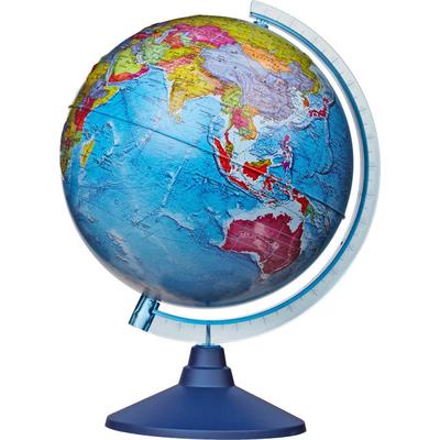 Политический глобус диаметром 25 см выполнен из прочного пластика. Дает представление о политическом устройстве мира, подходит как в качестве учебного пособия, так и для дома. На глобус нанесены границы государств и демаркационные линии, столицы и крупные города, линии перемены дат, железнодорожные и морские пути.