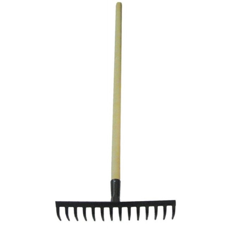 Грабли прямые РусТрейд сталь 37 см (с черенком 122 см). Назначение: Грабли РусТрейд идеальный инструмент для разрыхления и обработки почвы, для сбора садового мусора и опавшей листвы. Зубцы изготовлены из стали, а черенок - из дерева. Универсальные грабли подходят для предпосадочной подготовки грунта, а также для других заданий по саду. Количество зубьев: 14. Посадочный диаметр черенка: 30-32 (конус). Ширина рабочей части: 37 см. Длина рабочей части: 8 см. Длина инвентаря: 130 см.