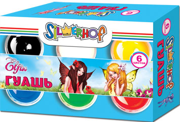 Гуашь предназначена для рисования на бумаге, картоне, по дереву и стеклу. В пластиковых баночках с завинчивающейся крышкой по 20 мл. Поставляется в картонной коробке.