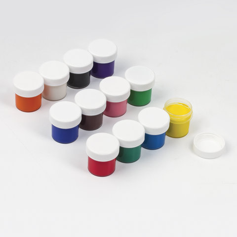 12 цветов: белый, черный, синий, красный, зеленый, желтый, коричневый, розовый, фиолетовый, голубой, оранжевый, травянисто-зеленый