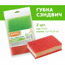 Губка для посуды "Хозяюшка" 2 шт/уп. "Сэндвич"