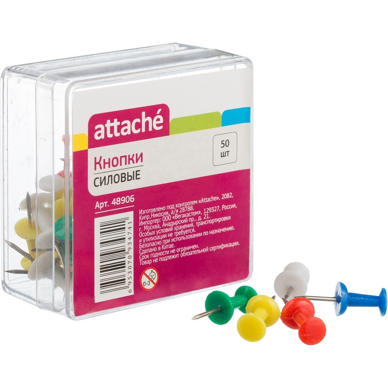 Кнопки силовые с пластиковым цветным держателем. Пластиковый бокс удобен для хранения и защищает от самопроизвольного высыпания кнопок. В коробке 50 шт. разного цвета.