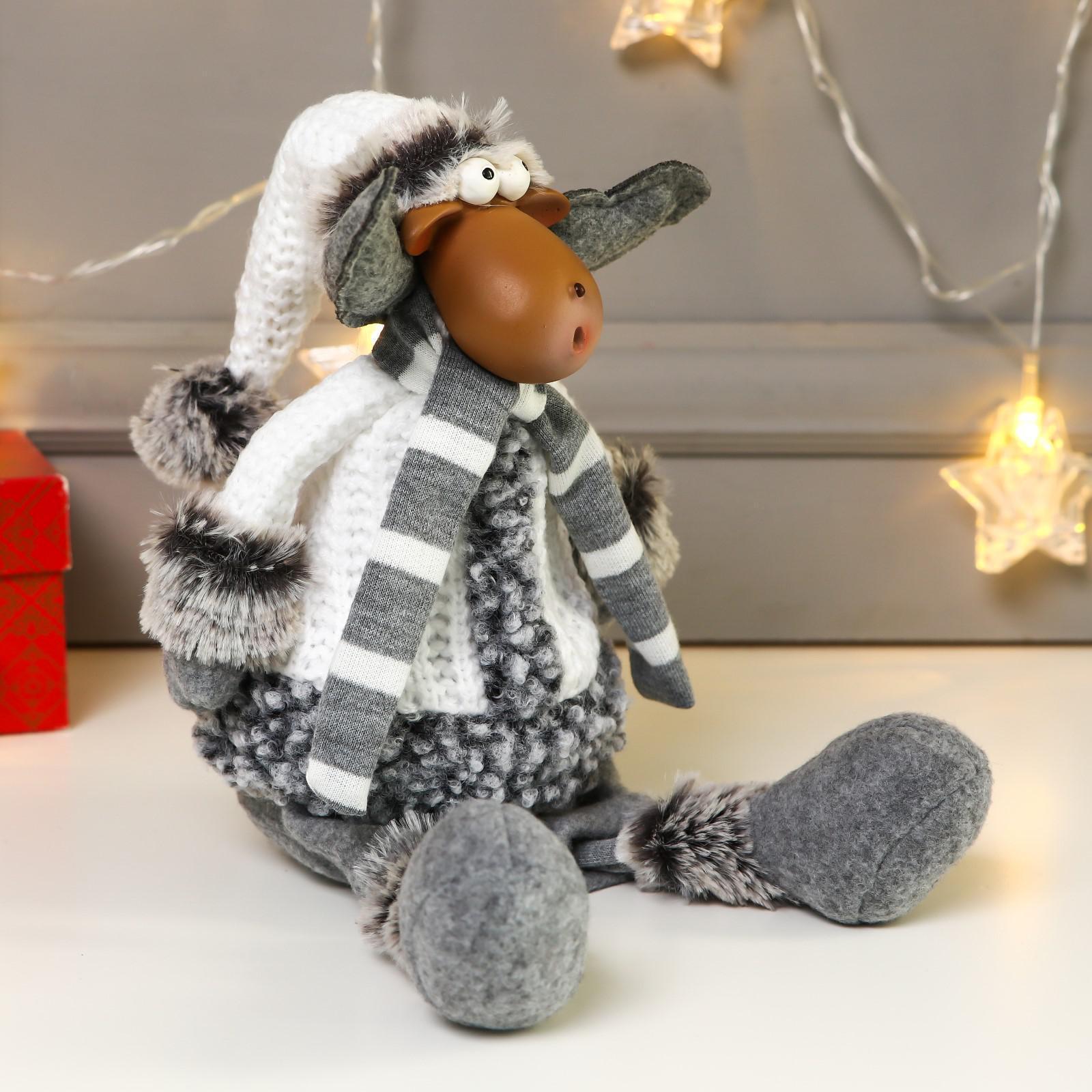 Игрушка интерьерная "Лосик в белой шубке и колпаке" 34см арт. 2315145