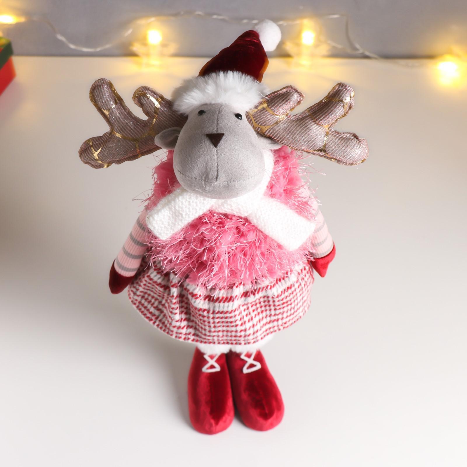 Игрушка интерьерная "Лосик в юбочке в клетку и жилетке-травке" 53х13х18см 6260139