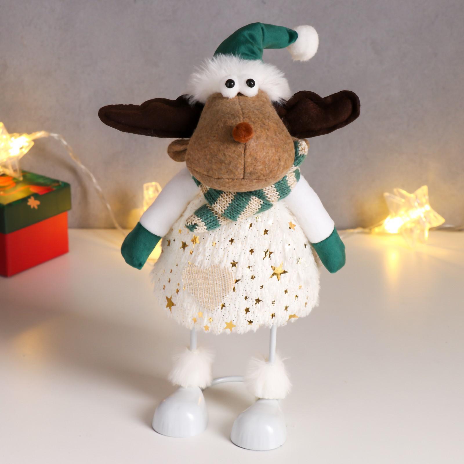 Игрушка интерьерная "Лосик в зеленом колпаке и белом наряде" 30х10х14 см. арт.626147