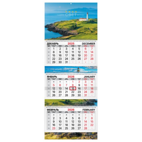 Календарь 2026 г. кварт. на 3-х пружинах 3 блока Brauberg Extra "Маяк" арт.116819