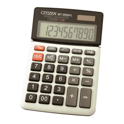 Калькулятор Citizen MT-850AII в пластиковом корпусе с 10-разрядным ЖК-дисплеем. Имеет оптимальный набор вычислительных функций: основные математические операции, расчет процентов, извлечение квадратного корня, запоминание промежуточных результатов. Удобная клавиатура снабжена кнопкой ввода двойного нуля. Питание калькулятора автоматически отключается после пяти минут бездействия.