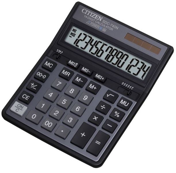 Калькулятор CITIZEN SDC-740 обладает функцией Double Memory — две встроенные ячейки памяти позволяют сохранять два различных значения. Основной набор функций стандартный, он включает базовые операции, а также расчет процентов, вычисление квадратного корня, пересчет валютного курса. Устройство имеет 14-разрядный однострочный дисплей. Среди дополнительных функций калькулятора — вычисление налогов и надбавки, выбор способа округления. Предусмотрено двойное питание: от батарейки или солнечного элемента. При простаивании без работы прибор автоматически отключается. Клавиши эргономичны, надписи на них не стираются. Есть клавиша «00».