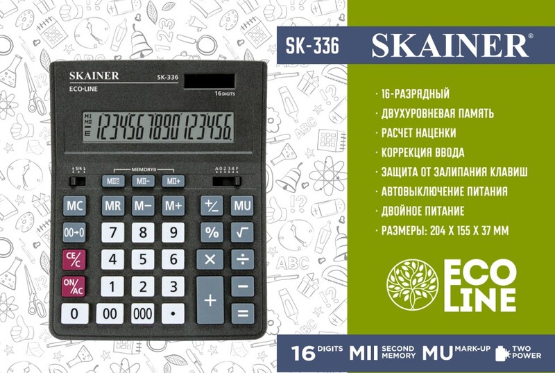 Калькулятор 16 разрядов Skainer SK-336 бухгалтерский 155х205х35 черный