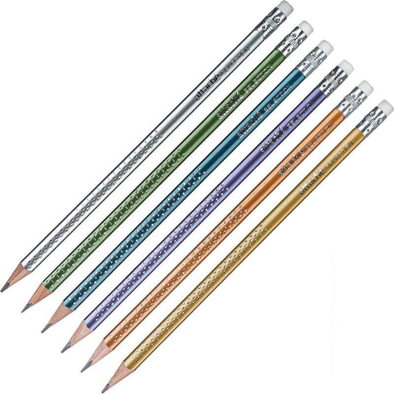 Карандаш чернографитный Attache Selection League первый помощник для выполнения проектно-конструкторских работ, позволяет сделать легкий набросок, быстрый стремительный рисунок или нарисовать полноценную картину. В трехгранном корпусе метализированных цветов. Стильный корпус выполнен из высококачественной древесины. Карандаш имеет многослойное лаковое покрытие с шелковистым эффектом. Длина корпуса карандаша - 186 мм. Поставляются заточенными, с ластиком. Твердость грифеля - HB. Легко затачиваются. Карандаши поставляются в упаковке по 6 штук. Внимание. Товар поставляется в нескольких цветовых решениях (без возможности выбора).