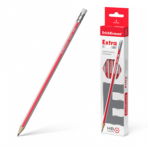Карандаш "Erich Krause" ч/гр Extra шестигранный с ластиком НВ корпус красный арт.ЕК43575