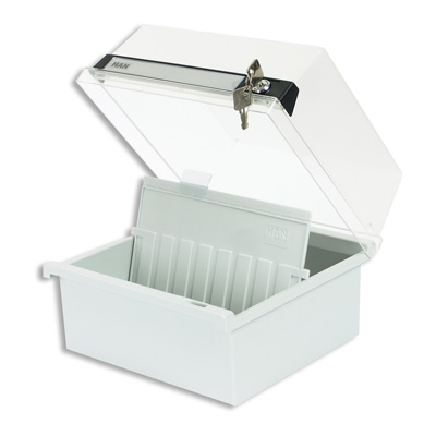 Закрытая горизонтальная картотека Han формата А5 изготовлена из пластика светло-серого цвета, размеры — 250×235×190 мм. Прозрачная крышка оснащена ключевым замком. Картотека предназначена для удобного хранения и систематизации карточек и документов. Вмещает до 800 картонных карточек (в комплект не входят). Поставляется с одним пластиковым разделителем и одним прозрачным индексным окном. Всего можно установить до 16 разделителей (приобретаются отдельно).