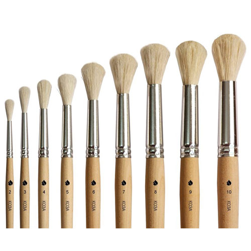 Кисти ученические из волоса козы С-19 – кисти с пропитанной деревянной ручкой и жестяной шовной обоймой. Волос козы не имеет вершинки и относится к оформительской группе. Кисти пышные и практически не собираются в пучок, немного хуже отдают краску. Серия включает ученические кисти плоской и круглой формы. Кисти из волоса козы предназначены для водорастворимых красок: акварель, гуашь, темпера, а также для работы клеями.