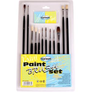 Набор 12 штук художественных кистей ассорти (высококачественный нейлон, волос овцы, щетина) № 1-12. Кисти с круглым профилем: 8 штук. Кисти с плоским профилем: 4 штуки. Упаковка блистр с европодвесом.