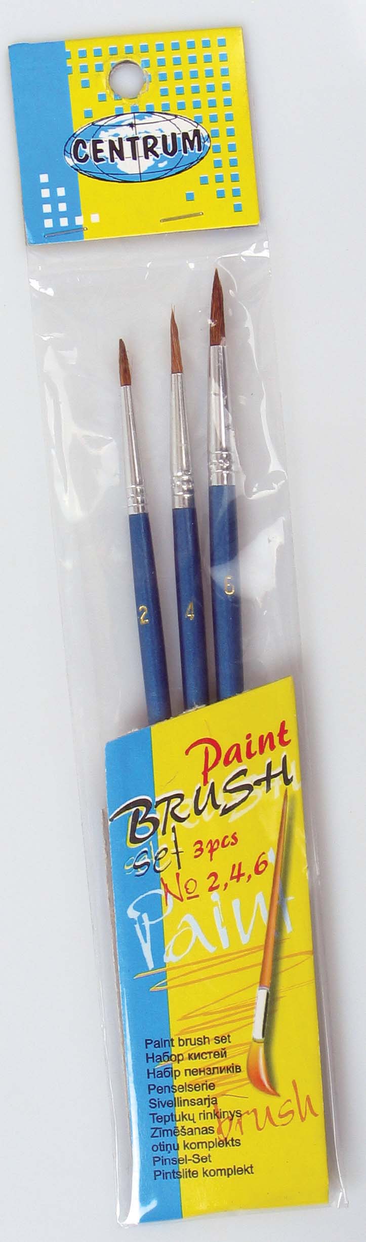 Набор 3 штуки художественных кистей из волоса овцы № 2,4,6. Профиль круглый. Индивидуальная упаковка с европодвесом.