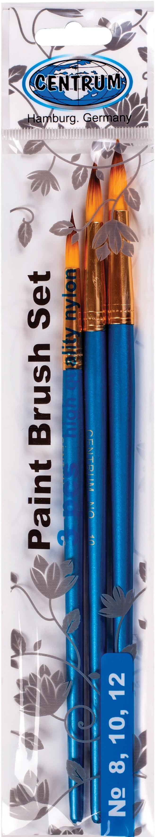 Набор из 3-х художественных кистей из высококачественного нейлона. № 8, 10, 12. Профиль круглый. В индивидуальной упаковке с подвесом.