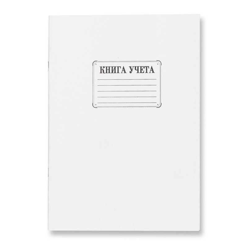 Бухгалтерская книга учета (формат А4). Обложка изготовлена из картона белого цвета. Внутренний блок — офсетная бумага, 48 листов в клетку. Способ крепления — скрепки.