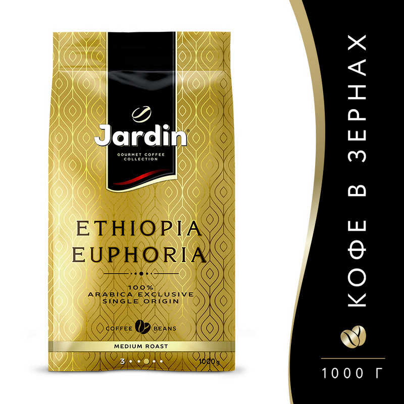 Кофе зерновой Jardin Ethiopia Euphoria - это 100% высокогорная арабика из Эфиопии. Благодаря деликатной обжарке редкого сорта арабики достигается великолепный аромат и мягкий сбалансированный вкус с естественной сладостью спелых фруктов. Состав: 100% арабика. Степень обжарки: средняя. Вид кофе: зерновой. Способ приготовления: приготовить в кофеварке, кофемашине или френч-прессе. Вес: 1 кг. Тип упаковки: мягкая упаковка. Условия хранения: плотно закрытый пакет хранить в сухом прохладном месте. Страна производства: Россия.