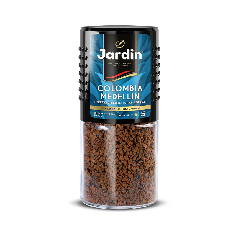 Кофе растворимый сублимированный Jardin Colombia Medelin - один из самых известных растворимых кофейных напитков! Его богатый, насыщенный аромат и глубокий вкус невозможно ни с чем перепутать, но так легко узнать из множества вариантов. Jardin Colombia Medelin создан из арабики Колумбии. Вкус из колумбийского региона Меделлин особо ценится за сочетание цветочных и шоколадных нот. А всего одна ложка сахара добавит вкусу новые карамельные ноты. Состав: 100% натуральный кофе. Вид кофе: растворимый, сублимированный Способ приготовления: добавить в чашку 1-2 чайные ложки кофе и залить горячей, но не кипящей водой. Вес: 95 г. Тип упаковки: стеклянная банка. Условия хранения: плотно закрытую банку хранить в сухом прохладном месте. Страна производства: Россия.
