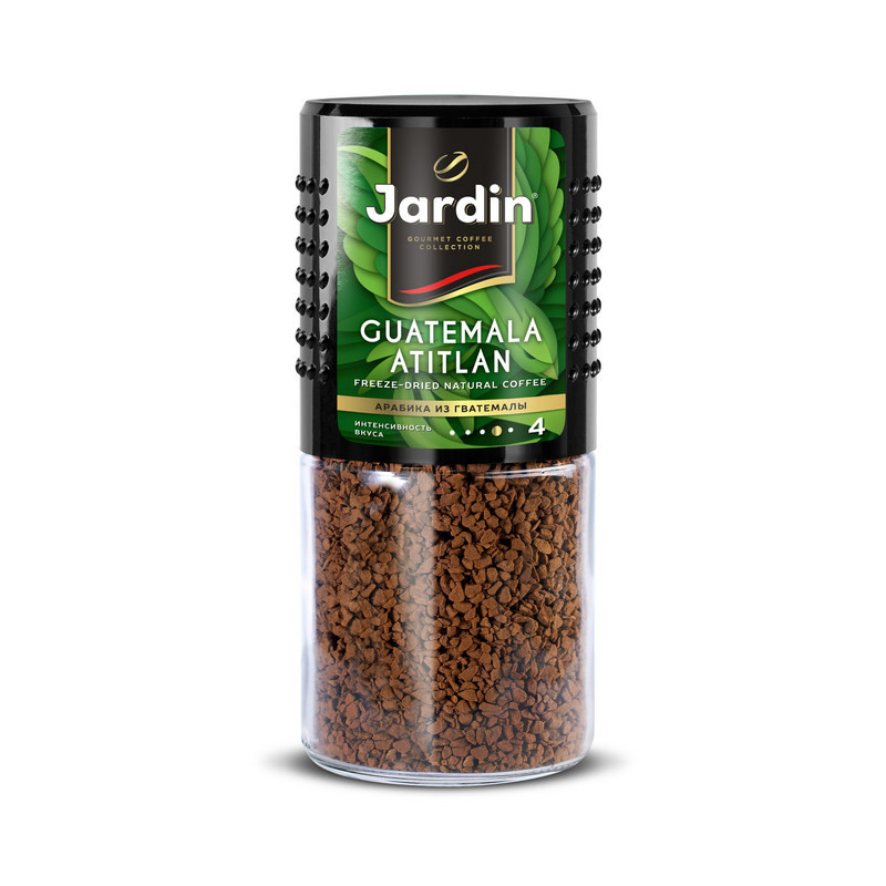 Кофе растворимый сублимированный Jardin Guatemala Atitlan - один из самых известных растворимых кофейных напитков! Его богатый, насыщенный аромат и глубокий вкус невозможно ни с чем перепутать, но так легко узнать из множества вариантов. Jardin Guatemala Atitlan создает особую, приятную атмосферу, окружая волнующим ароматом и благородным вкусом. Jardin Guatemala Atitlan создан лучшими кофейными экспертами из отборных зерен арабики из гватемалы. Он остается популярным и любимым многими поклонниками кофе по сей день. В Гватемале выращивают сбалансированный и ровный по вкусу кофе. Этот сорт отличает приятная сладость послевкусия с фруктовыми оттенками. Кофе обладает интенсивностью вкуса 4 из 5. Состав: 100% натуральный кофе. Степень обжарки: темная. Вид кофе: растворимый, сублимированный. Способ приготовления: добавить в чашку 1-2 чайные ложки кофе и залить горячей, но не кипящей водой. Вес: 95 г. Тип упаковки: стеклянная банка. Условия хранения: плотно закрытую банку хранить в сухом прохладном месте. Страна производства: Россия.