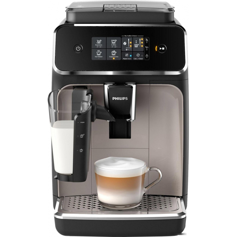 Кофемашина Philips EP2035/40 с автоматическим капучинатором в стильном черно-серебристом корпусе из металла подходит для использования на домашней или офисной кухне. Готовьте любимый кофе - эспрессо, кофе и капучино - одним нажатием кнопки. Капучинатор LatteGo подарит вам вкусный кофе с нежнейшей молочной пеной. Кроме эффектного дизайна модель отличается обширным функционалом. Она может автоматически готовить напиток из молотого и зернового продукта. Встроенная в конструкцию кофемолка имеет 12 степеней помола. В контейнер для зерен помещается до 275 г продукта. Встроенная емкость для молока обладает объемом 260 мл. Также в конструкции кофемашины Philips EP2035/40 предусмотрены многоразовый фильтр и контейнер для отходов. Модель способна готовить сразу 2 чашки напитка. Вся необходимая пользователю информация отображается на дисплее. Степень помола зерен и крепость кофе можно регулировать в зависимости от вкусов владельца устройства. Система Aroma Extract в интеллектуальном режиме находит оптимальный баланс между температурой варки и интенсивностью аромата кофе, поддерживая температуру воды между 90 и 98 °C, а также регулируя количество воды, чтобы вы всегда наслаждались самым вкусным кофе. Система автоматической декальцинации предотвращает появление накипи внутри устройства. Режим энергосбережения обеспечивает достойную энергоэффективность модели.