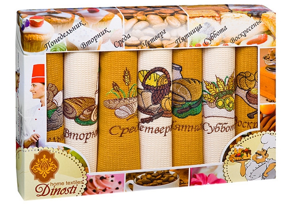 Комплект полотенец 47х60 (7 шт.) Dinosti НЕДЕЛЬКА ХЛЕБ вафельные арт Н-4