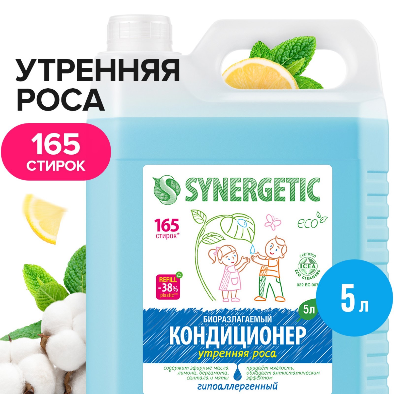 Гипоаллергенный кондиционер-ополаскиватель нейтрализует остатки средств для стирки на ткани, помогает сохранить структуру ткани, защищая волокна от изнашивания и повреждения. Средство обладает антистатическим эффектом. Комплекс растительных К-тензидов обеспечивает легкую глажку белья после стирки и высыхания. Гипоаллергенная парфюмерная композиция с эфирными маслами лимона, бергамота, сантала и мяты придает белью свежий аромат.