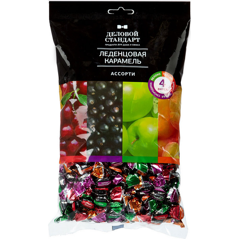 Леденцовая карамель 'Деловой стандарт' - это вкусное и натуральное лакомство, наслаждаться которым можно практически бесконечно. В нашей карамели, приготовленной по традиционным рецептам, есть вкусы сочной вишни, зелёного яблоко, ароматного персика и черной смородины. Состав: сахар, сироп мальтозный, пищевые добавки: регулятор кислотности - кислота лимонная, ароматизаторы (вишня, персик, черная смородина, яблоко), красители пищевые (кармин Е120, антоцианы Е163, экстракт паприки Е160с). Пищевая ценность в 100 г продукта: жиров - 0.1 г, углеводов - 97 г. Энергетическая ценность: 380 ккал/1591 кДж. Тип упаковки: картонная. Вес: 500 г. Хранить при температуре 18+3 °C и относительной влажности воздуха не более 75%. Срок годности: 12 месяцев. Страна производства: Россия. Изготовитель: ООО 'Малвикъ'.
