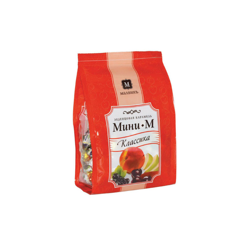 Леденцовая карамель 'Мини-М' в мягкой запаянной упаковке, вес - 150 г. Леденцовая карамель Малвикъ Мини-М - это вкусное и натуральное лакомство, наслаждаться которым можно практически бесконечно. Классическая коллекция, приготовленная по традиционным рецептам, состоит из карамели со вкусом сочной вишни, зеленого яблока, ароматного персика и черной смородины. Состав: ароматизатор, лимонная кислота, патока, сахар. Энергетическая ценность в 100 г продукта: 380 ккал. Хранить в сухом прохладном месте при температуре от +15°С до 21°С и относительной влажности не более 75%. Постный продукт.