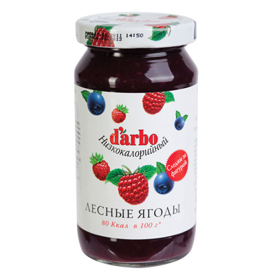Конфитюр низкокалорийный с повышенным содержанием ягод (60%). Вместо сахара используется фруктоза. Малина помогает бороться с бессонницей, депрессией, снимает напряжение и улучшает настроение, а также полезна при малокровии, атеросклерозе, заболеваниях желудочно-кишечного тракта, гипертонии. Черника содержит множество витаминов, помогает сохранять зрение и замедлять старение, укрепляет сосуды, снижает риск образования тромбов, защищает от инфекций. Ягоды лесной земляники растворяют почечные и печеночные камни, выводят соли тяжелых металлов из организма. По содержанию кальция земляника занимает первое место среди фруктов и ягод. В ней содержится целый ряд микроэлементов, участвующих в кроветворении: марганец, медь, железо. Без консервантов и красителей, низкокалорийный.