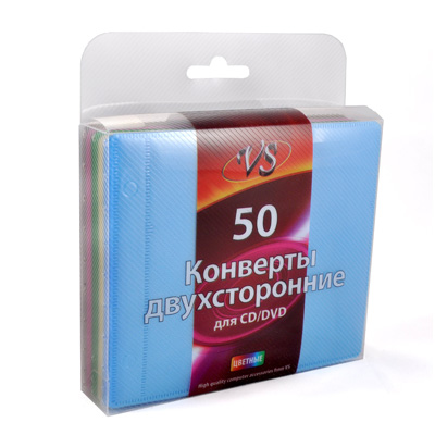 Конверт-пакет для 2-х CD пластиковый цветной 50 шт/уп. (5цветов по 10шт.) ассорти