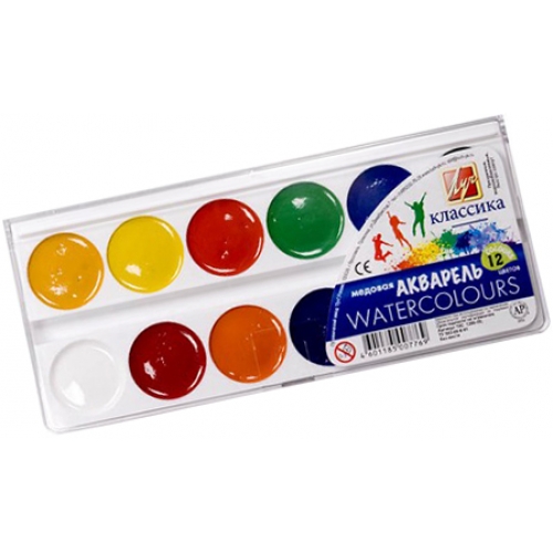 Краски акварельные «Классика» медовые полусухие изготовлены на основе органических пигментов и натурального связующего с добавлением пчелиного мёда, находятся в пластмассовой упаковке с прозрачной крышкой. Акварель предназначена для детского творчества и различных живописных работ.