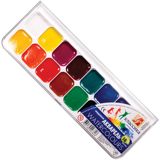Краски акварельные «Классика» медовые полусухие изготовлены на основе органических пигментов и натурального связующего с добавлением пчелиного мёда, находятся в пластмассовой упаковке с прозрачной крышкой. Акварель предназначена для детского творчества и различных живописных работ.